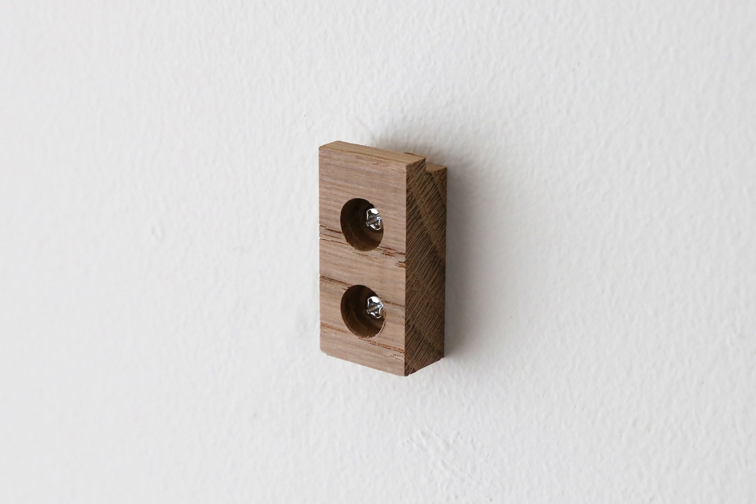 - ウォールラックを壁面に固定するには、付属の固定部品を壁面に設置し、ラックを引っ掛けるように固定します。正面からは固定箇所が見えないようデザイン性にもこだわっています。