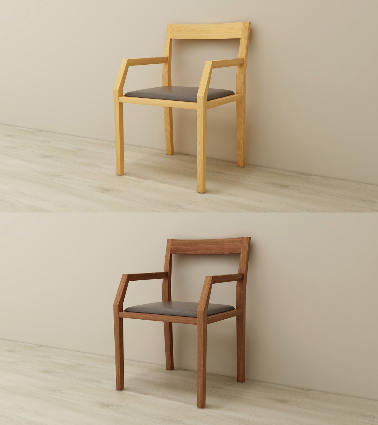 ブラックは、オークにグレー塗装を施し、マットな質感に仕上げています。