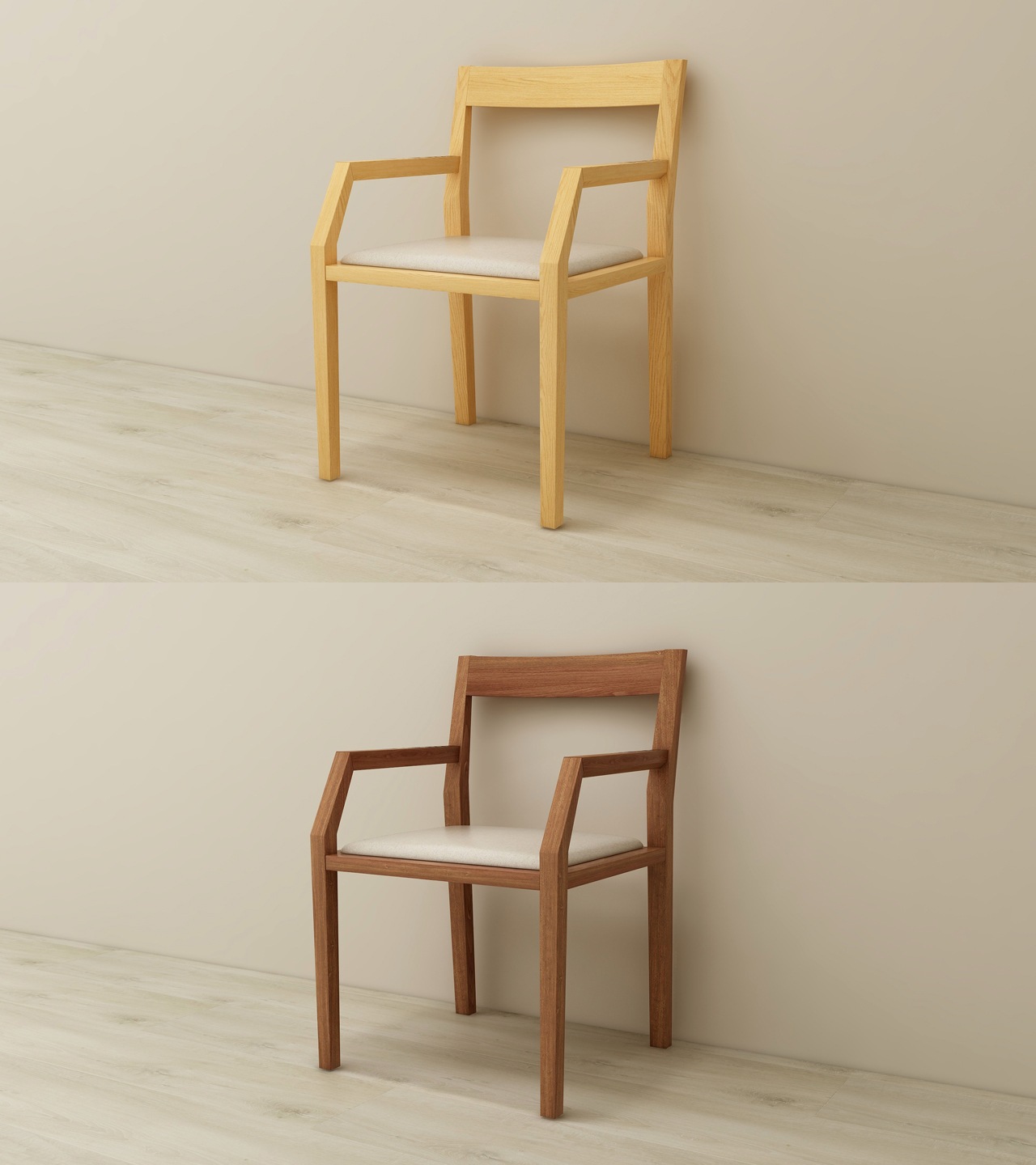 - 背もたれ部分は、木目をいかした曲げ加工です。無垢材の美しい柾目となめらかな手触りをお楽しみ頂けます。
