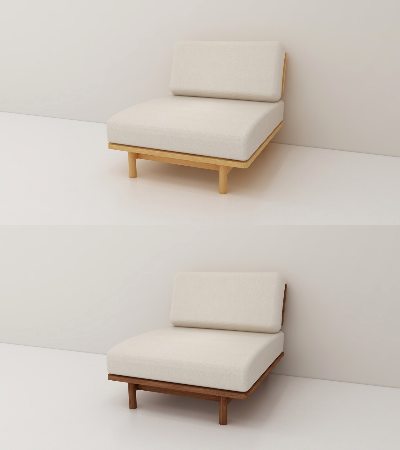 - 木製フレームはやわらかい印象の丸みのあるデザインを採用しています。背もたれ部分は、背中にゆったりと当たる角度と丸みのある表面で背中にほどよくフィットするよう仕上げています。