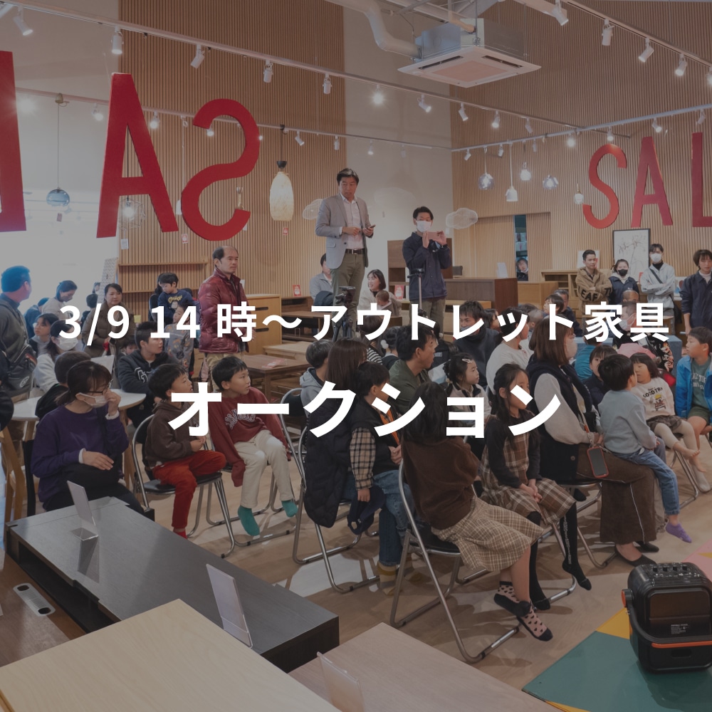 本社直営店では、家具・雑貨全品5%OFFのSALEをはじめ、アウトレット家具が最大80%OFFの大特価まつりを開催。